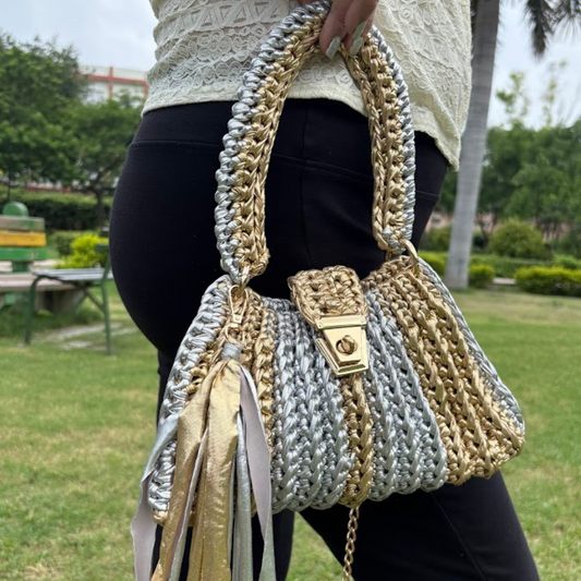 Shiroli Handmade Designer Metallic Gold & Silver Bag