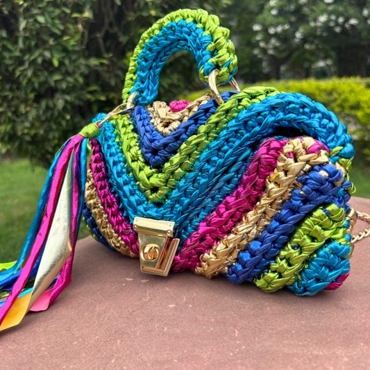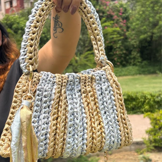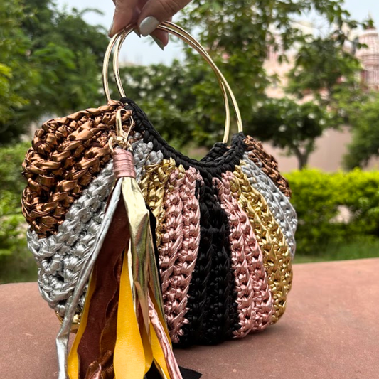 Shiroli Handmade Metallic Particolored- Braided Bag
