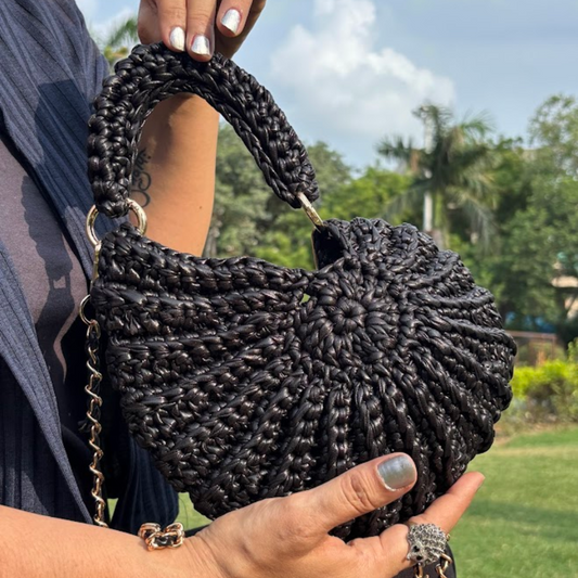 Shiroli Handmade Designer Metallic Black - Shell Bag