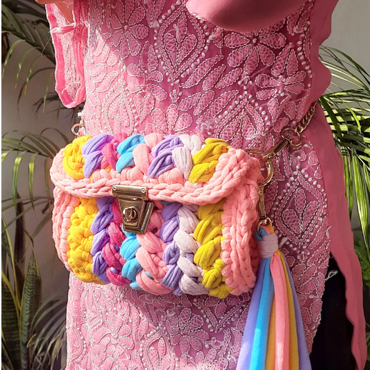 Shiroli Handmade Designer Pink Crush Rainbow Bag