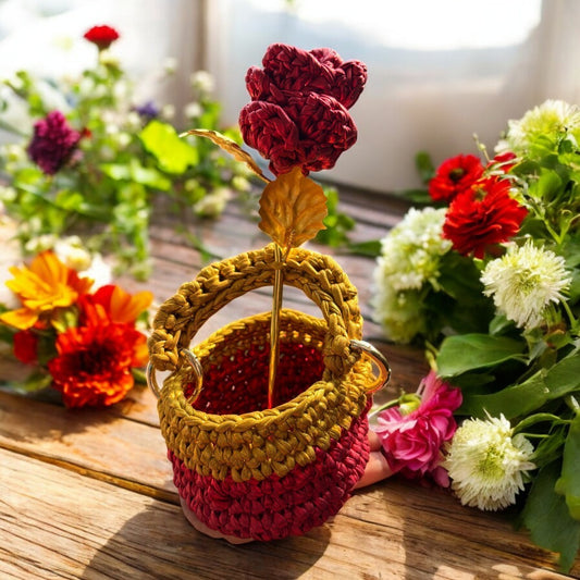 Shiroli Gold-Plated Handcrafted Red Rose - With FREE Cute Mini Basket