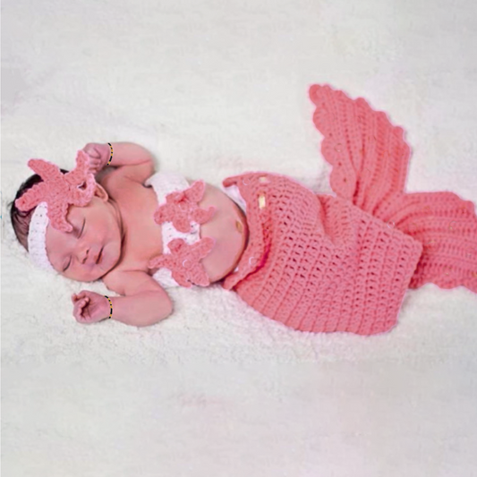 Handmade Baby Girl Mermaid Costume - Set of 3(Mermaid Tail, Bralette, Headband)